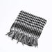 - Finitions : côté en franges et pompons attachés aux extrémités de l’écharpe Shemagh